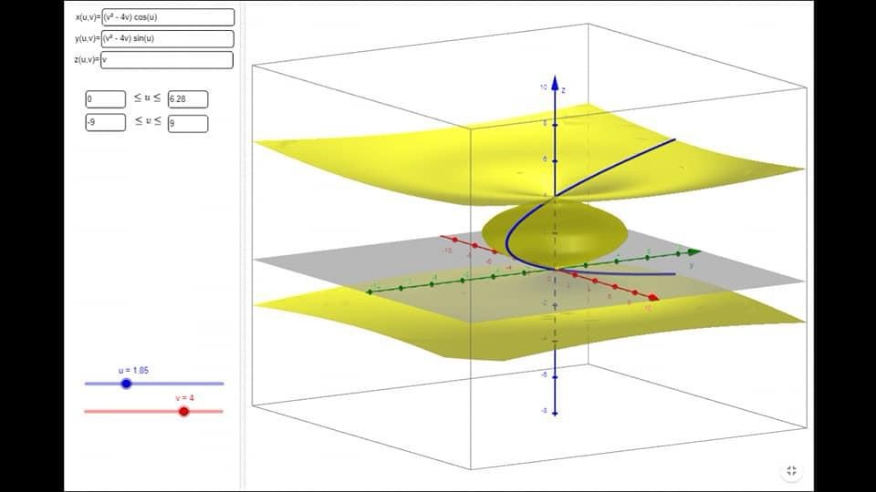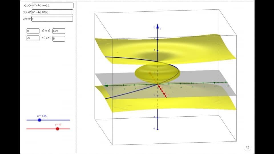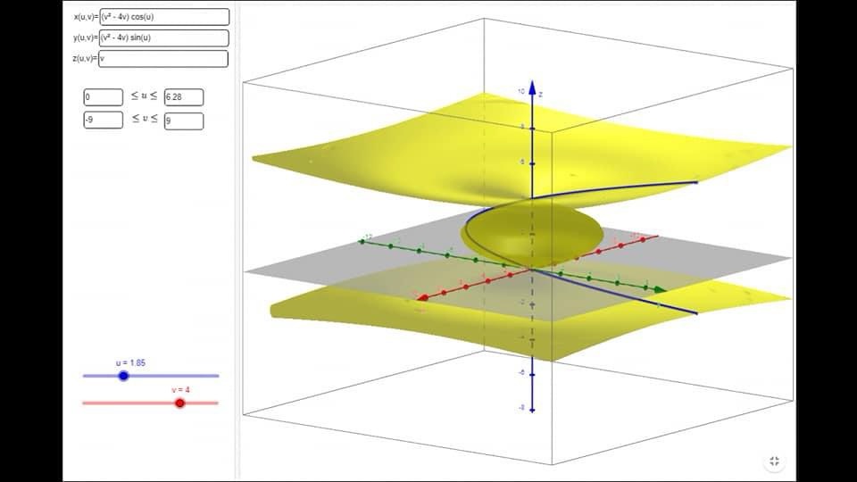 da cui (X,Y,Z)=((v^²-4v)cosu,(v²-4v)sinu,v).
